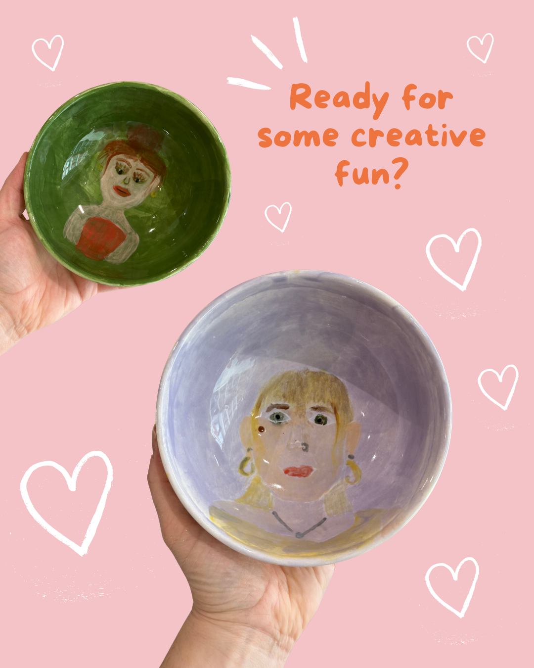 Beim Spezial-Event Paint your date malt ihr euch gegenseitig auf Keramik – verspielt, liebevoll oder abstrakt. Ein Abend voller Farbe, Lachen und Nähe, bei dem einzigartige Erinnerungsstücke entstehen.